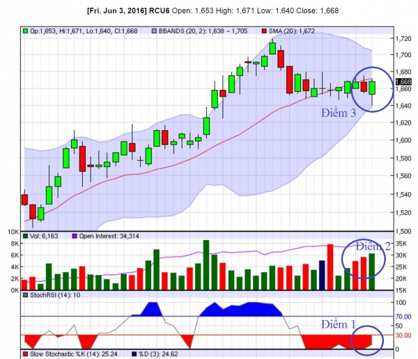 Lượng giao dịch liên tục âm thầm tăng lên của thị trường LD trong trạng thái đảo chiều là tín hiệu tốt cho mầm mống tăng giá (xem đánh dấu tại điểm 2 trên đồ thị)